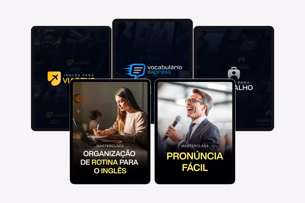 Mais que um curso: um plano de ação pronto que você só precisa seguir para estar falando inglês em 06 meses. Você não precisa pensar em nada, sua jornada do zero à fluência já foi mapeada. Confia e aplica!